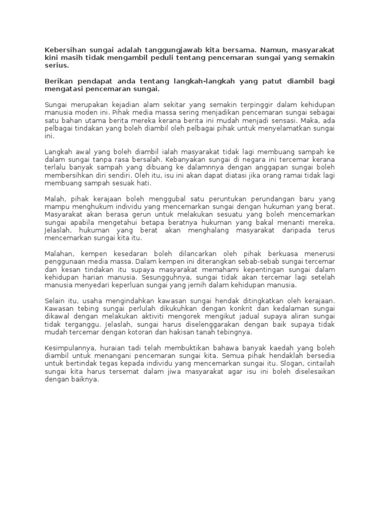 Karangan Jenis Surat Kiriman Rasmi Soalan Andaikan anda setiausaha Jawatankuasa Sosial kampung anda. Contoh Karangan Punca-Punca Pencemaran Sungai Yang Memberi Kesan Kepada Alam Sekitar Pendahuluan. Bagi menarik daya minat pembaca atau penanda kertas pelajar perlu tahu menulis karangan dengan seimbang.